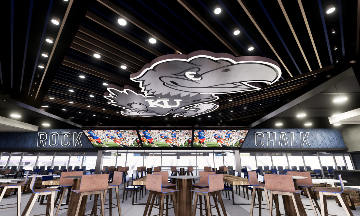 The upgrades to David Booth Kansas Memorial Stadium will enhance the fan experience through new amenities, seating options and modernization of the full gameday experience, bringing more fans to the stadium on gamedays. Fans will be closer to the field of play with elevated sightlines creating the ability to impact and amplify the home-field advantage and level of support for the athletes. This will all create an energetic atmosphere, one of the best in the nation, and escalate the level of play as well as the recruitment of new student-athletes to represent the great university.